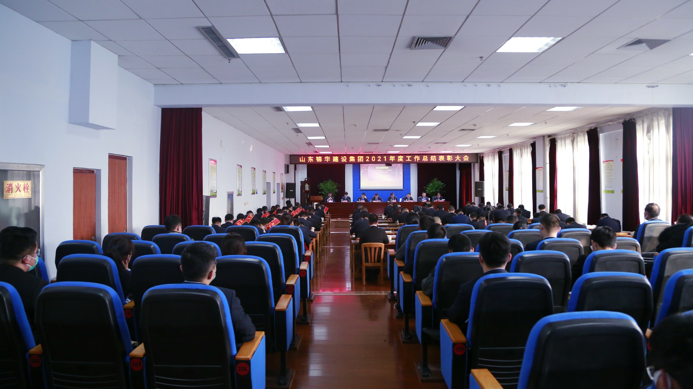 为防控疫情,本次会议采取“现场+网络直播”形式进行。表彰大会在嘹亮的《锦华之歌》中拉开帷幕。锦华集团董事长、总经理张茂文,监事长刘加星,副董事长张霞,副总经理费洪民、肖宏文、张涛、卜平凡,总工程师白伟波出席会议。刘加星主持会议。