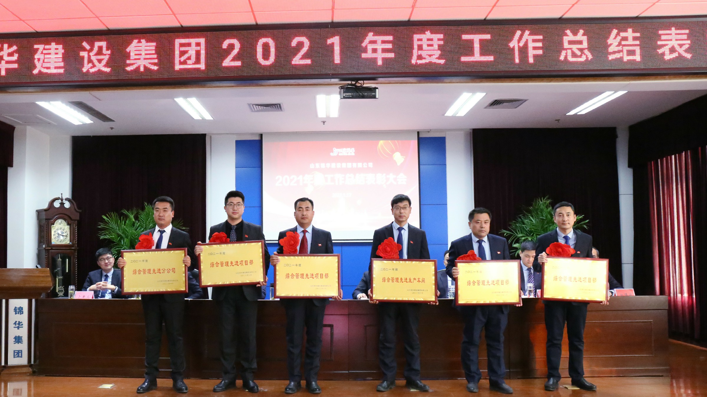 1月17日,山东锦华建设集团2021年度工作总结表彰大会在锦华大厦15楼会议室胜利召开。会议总结回顾2021年度各项工作,对取得优异成绩的先进集体和个人给予表彰,同时结合集团公司发展实际,安排部署2022年度各项工作。